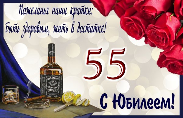Стильные, оригинальные открытки с юбилеем 55 лет мужчине вы найдете на нашем сайте. Почти все они с пожеланиями на торжество и Вам не нужно думать, как подписать открытку. Дата 55 лет своеобразный рубеж для юбиляра, подведение итогов и построение планов для дальнейшей жизни. Из множества картинок можно подобрать изображение на любой вкус с пожеланиями здоровья и счастья. Подарите намек, что жизнь только начинается.